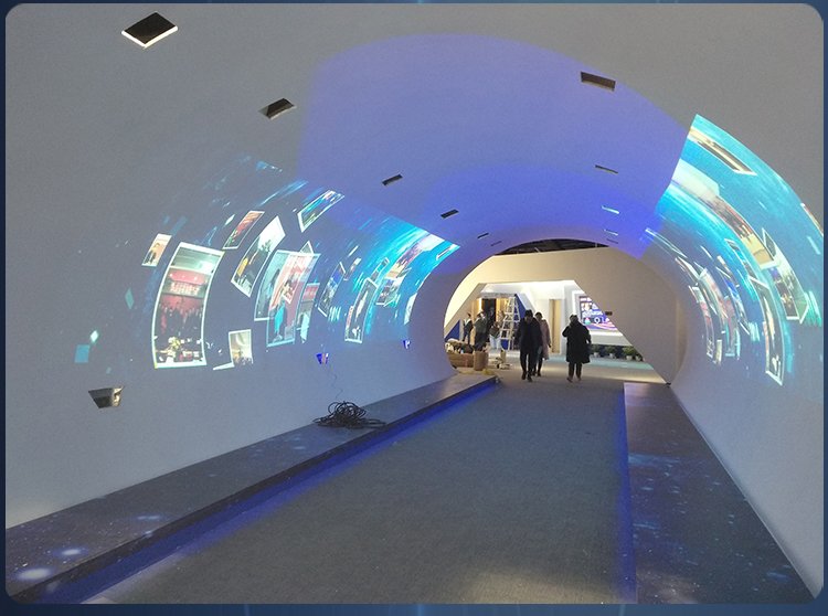 光影隧道展示的形式多样,以文字、图片、视频、声音来展示各类主题宣传片。